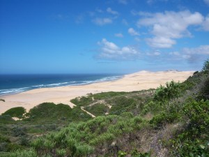 Last summer (our winter 2010/11) we took a ride out there with John’s Dad to see what we could see land-side. It’s only a couple of hours, tops, from PE and throw in a lunch and you have a marvellous day out. Which we did. We drove through the Woody Cape National Park which is gorgeous green grassland and very much cow country.  You can see Bird Island on a clear day as you climb up through the hills. We saw a sign for the Ocean View camp site and made a mental note to give it a whirl at some point.